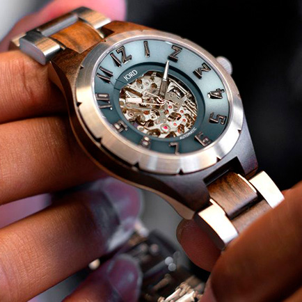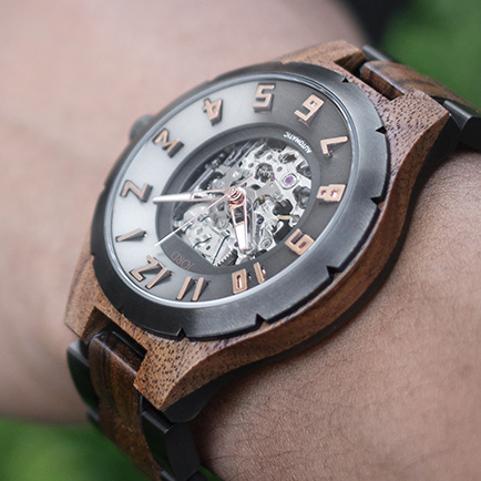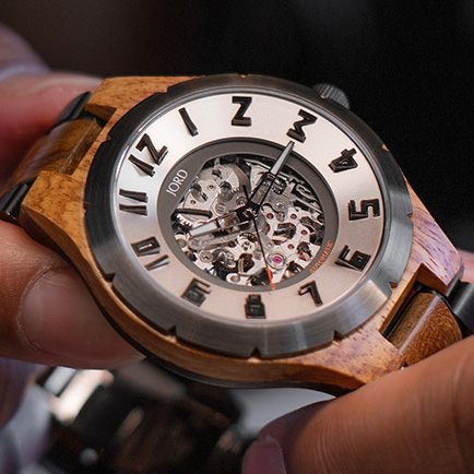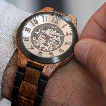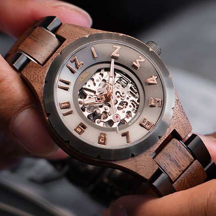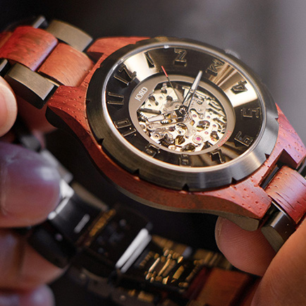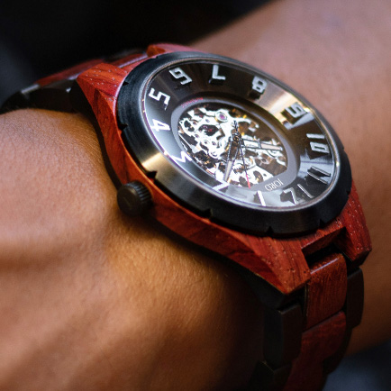 The timing has never been better for this sporty overhaul of our iconic Dover Collection. We’ve increased strength and rigidity with a steelcore™ frame while streamlining the profile thickness to just under 12mm: clean lines with an aerodynamic flow. Watch the sophisticated motion of gears and rotors as the self-winding automatic movement churns under the hood. The signature look of the cambered inner dial has been enlarged while retaining the classic 42mm bezel manifold. Sloped lug ends flow smoothly into a 48-piece, handmade wood & steel band.