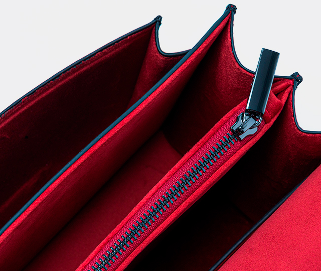 Emilie expresses desirability with practicality in equal measure. For the goddess in all of us, Emilie is class with versatility. Every inch was designed with intention from raw texture to exposed stitching she feels more like a piece of art than just a handbag. Plush velvet lining is encapsulated in a warm Suberhide™ exterior. Accordion-style construction allows for a streamlined silhouette with plenty of space for everyday use. A beautiful interlocking chain strap can be worn as a transitional crossbody or folded over for an evening shoulder bag. This is an office chic to date night essential.