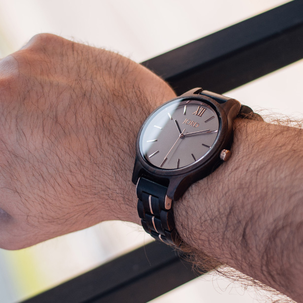 Minimalism has never equated to more. Deeply toned sandalwood combines with a solid smoke face to create a subtlety of strength. Your time is your own. Find elegance with ease in the ultra slim case and enjoy the comfort of the straight line strap. The uncomplicated face allows focus, the streamlined shaping offers style. Wear time well with the Frankie Dark Sandalwood & Smoke.