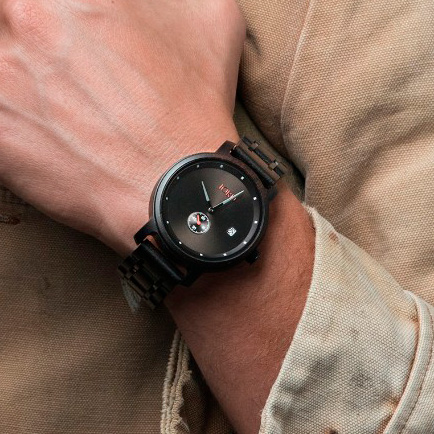 Hyde is a generous 43mm timepiece with wearable versatility. Formal or fun, it’s a talk piece for all occasions. sapphire crystal protects a clean, minimalist dial with a recessed sub-dial ticking down the seconds. Every day active life durability is achieved through a reinforced steelcore™ endoskeleton. The 72-piece adjustable band is built with tracks of wood and steel interlaced components. Cut through the noise and make your mark with flare and function.
