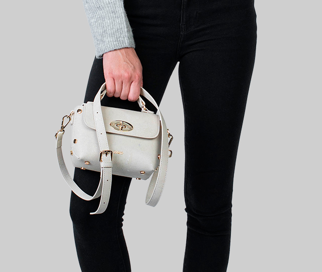 Nina is just too cute. She’s fun, versatile, and ready when you are! Cylindrical rivets conjoin overlapping pieces of Suberhide™ for an unmistakable construction and feel. Wear her as a crossbody with a distinct Suberhide™ strap or carry as a clutch with an adorable top handle. Though playful and unassuming; she’ll be the topic of tonight’s conversation.